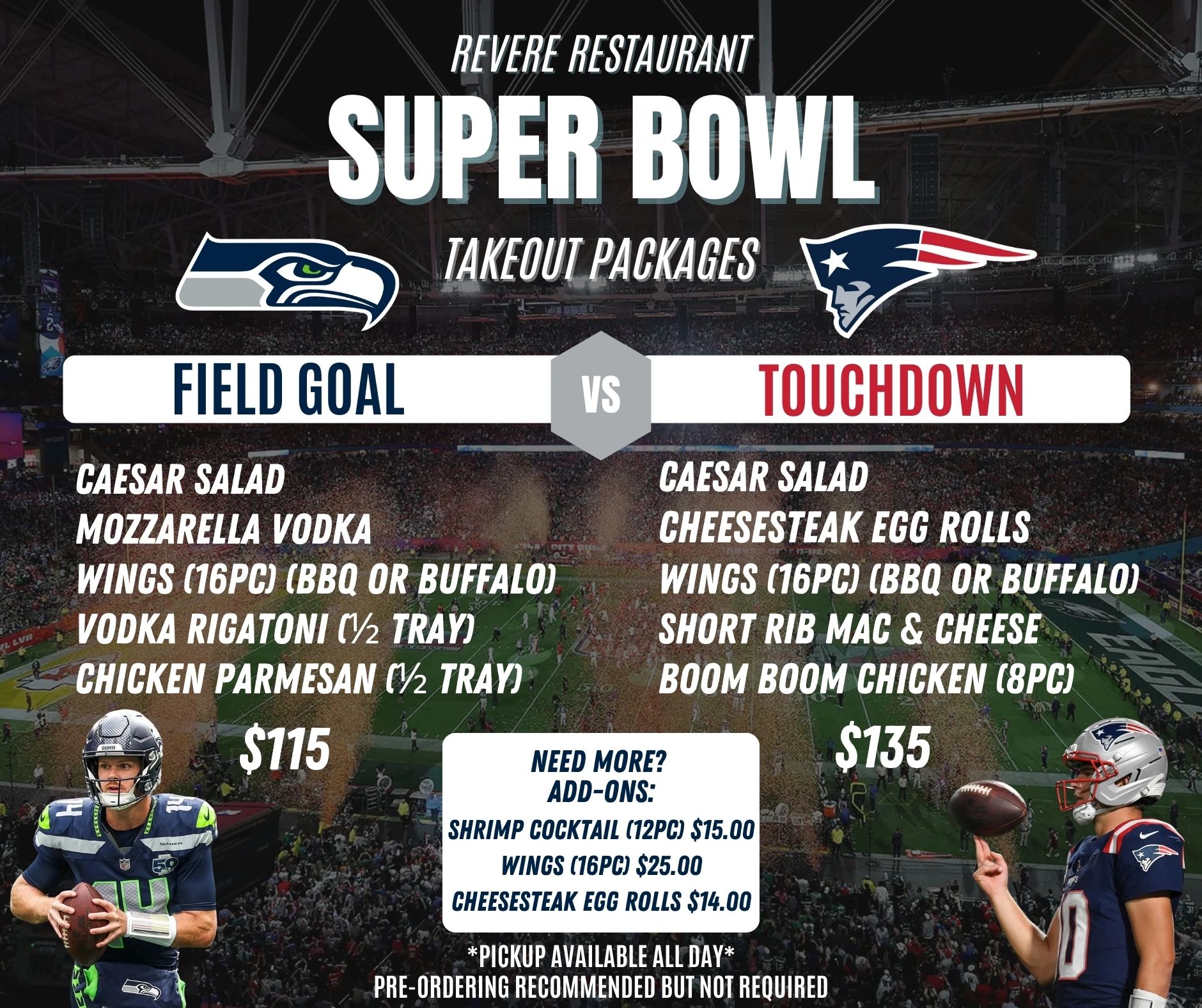 Super Bowl Takeout Packages! 🏈